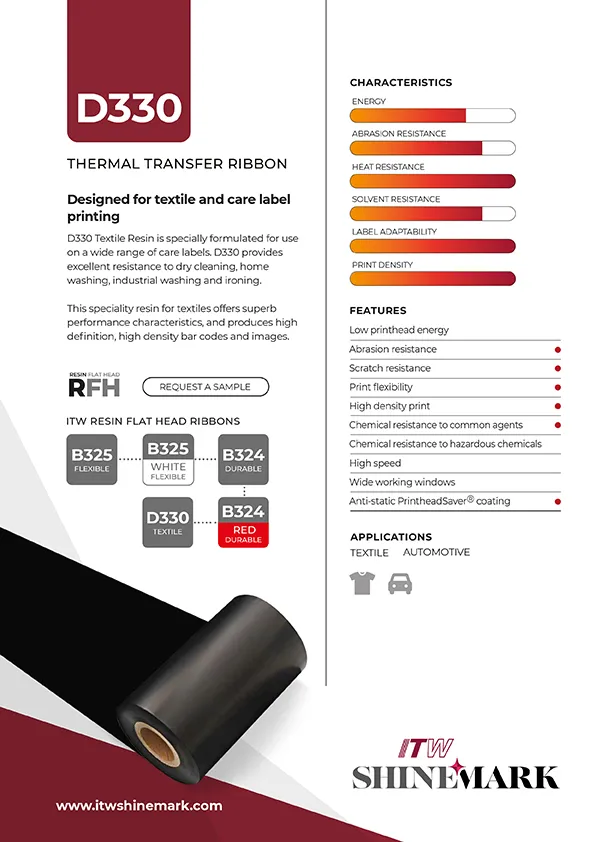 Ruban Transfert Thermique ITW Résine Textile D330